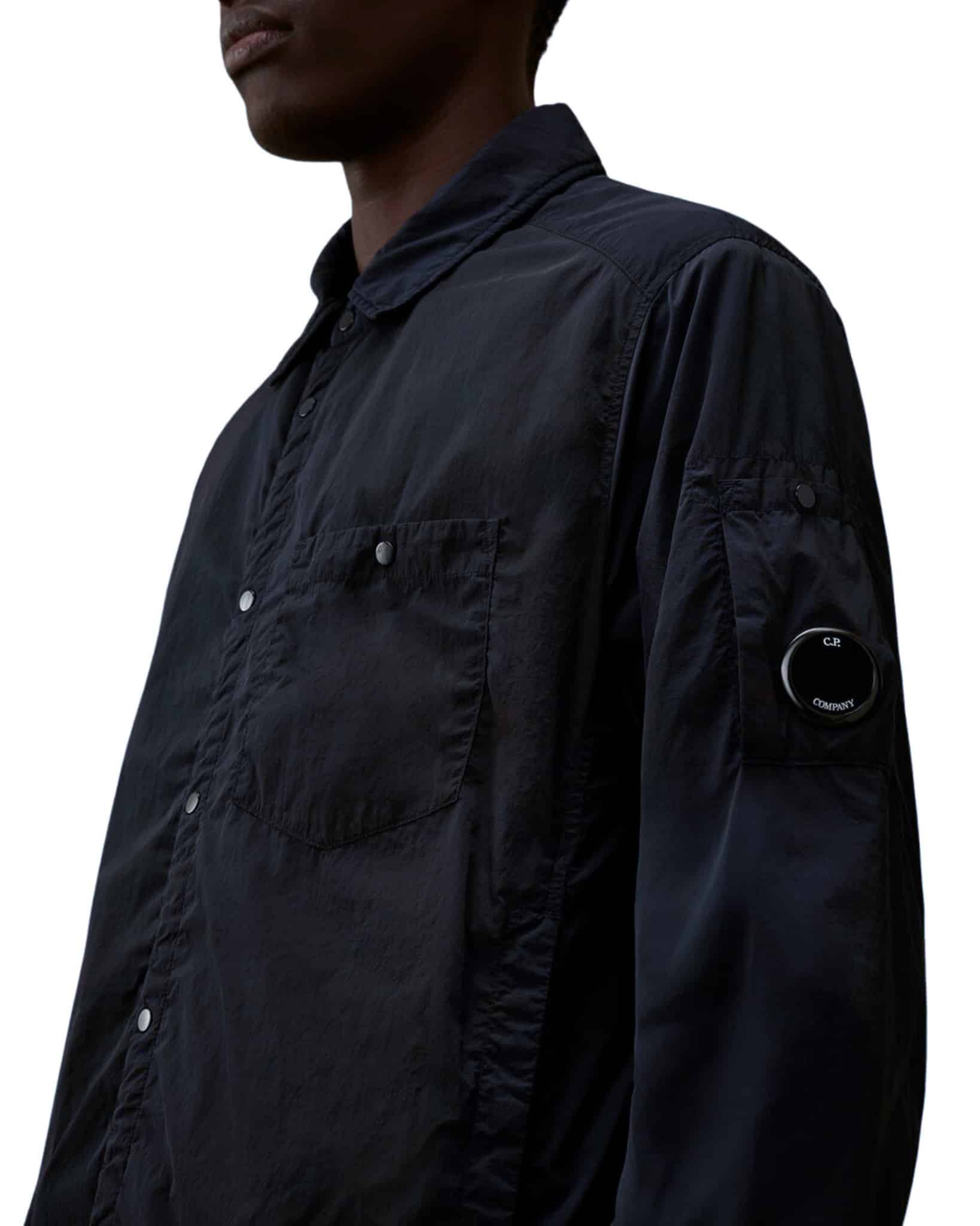 Diese Overshirt-Jacke ist aus Chrome-R gefertigt, einem glänzenden, zu 100 % recycelten Multifilament-Nylon. Es wird aus Produktionsabfällen hergestellt und zu einer nach dem Global Recycled Standard (GRS) zertifizierten Faser verarbeitet. Das Modell verfügt über einen klassischen Kragen, Druckknöpfe, eine Brusttasche mit Druckknopf, seitliche Druckknopftaschen und das ikonische C.P. Company Lens-Logo auf der Ärmeltasche. Verstellbare Druckknopfbündchen und eine leichte Wattierung sorgen für Funktionalität und Tragekomfort. Die Jacke ist stückgefärbt, wodurch eine einzigartige Farbtiefe und Farbnuancen entstehen, die sich mit der Zeit und durch das Tragen verändern.