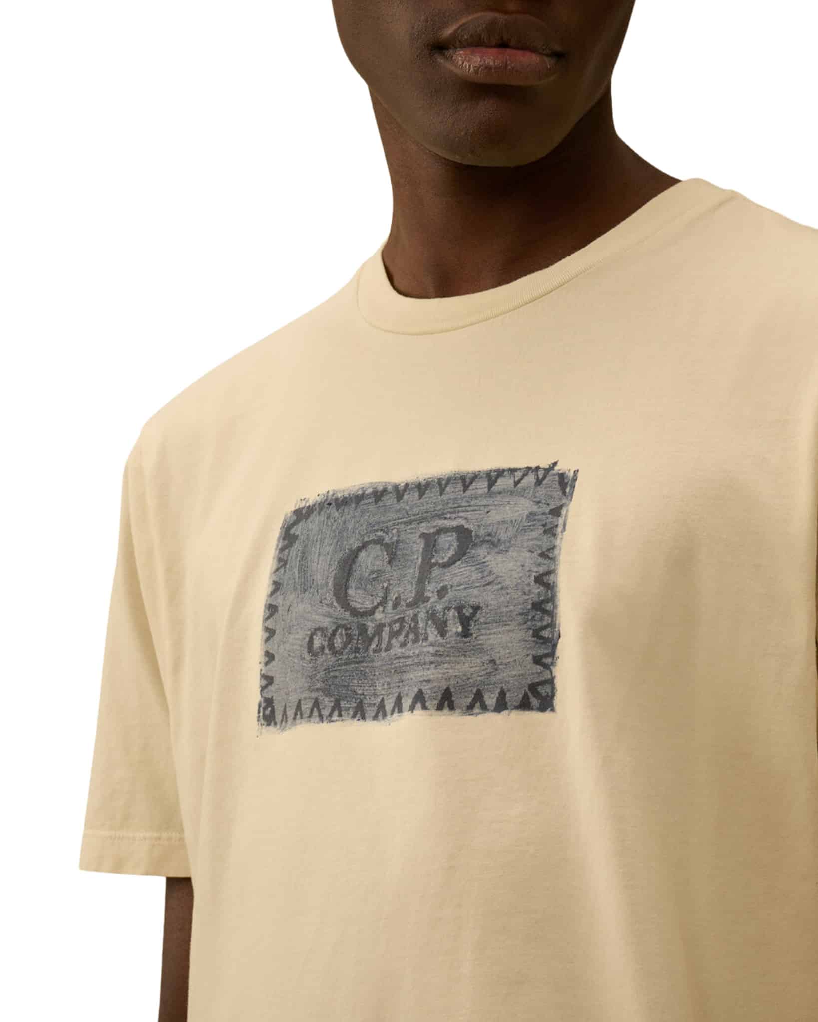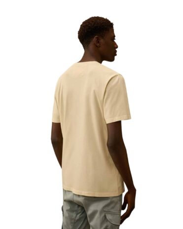 Kurzarm-T-Shirt aus weichem und atmungsaktivem 24/1-Baumwolljersey. Das Modell hat einen gerippten Rundhalsausschnitt und einen farbigen Unterstoff, der eine „Reserve“ für die Stickerei bildet. Die Stickerei wird anschließend von Hand gebürstet, wodurch die darunterliegende Farbe des reservierten Unterstoffs hervorgehoben und die gestickten Buchstaben betont werden. Das T-Shirt ist stückgefärbt, um eine einzigartige Farbintensität zu erzielen, die mit der Zeit und dem Tragen noch intensiver wird.