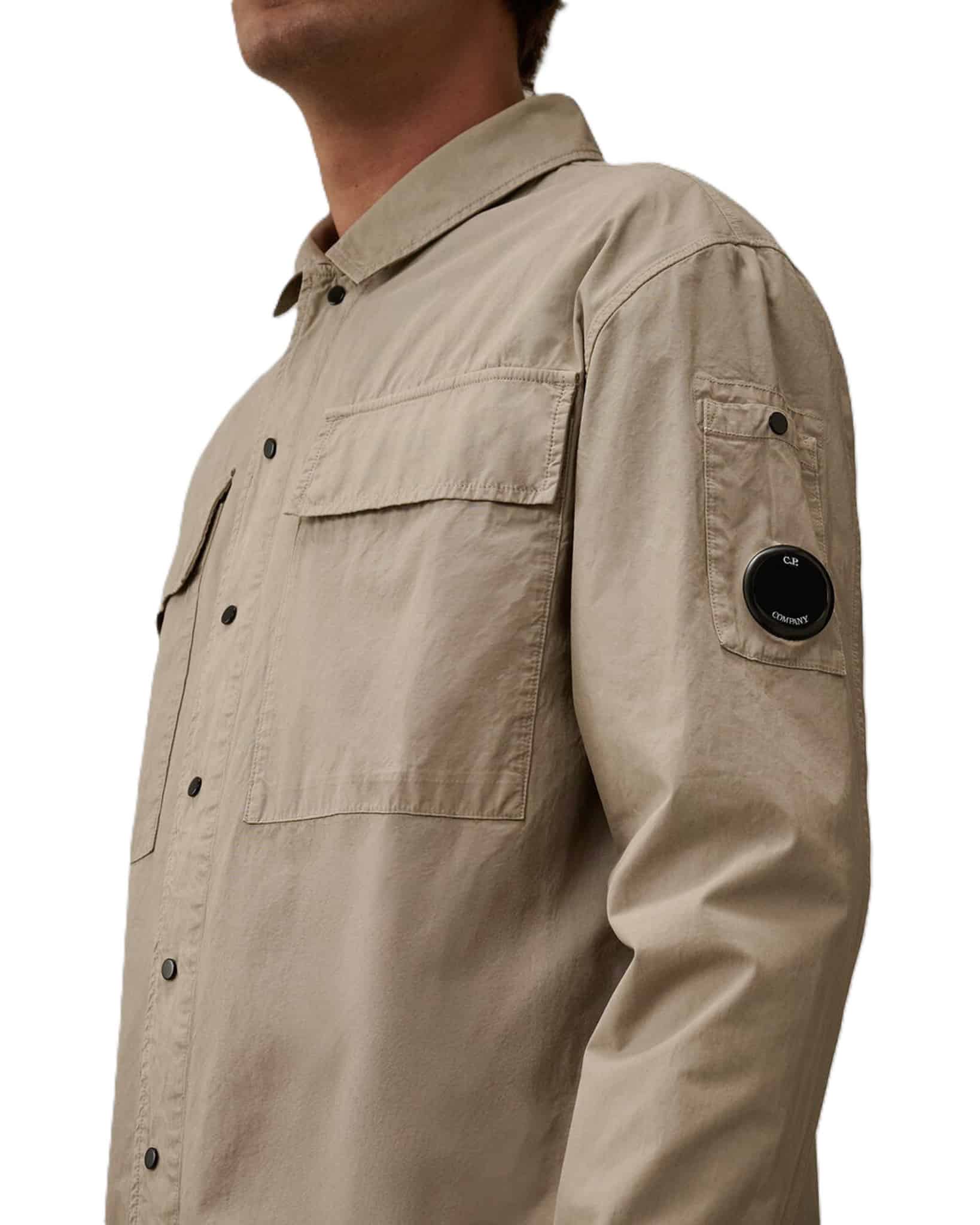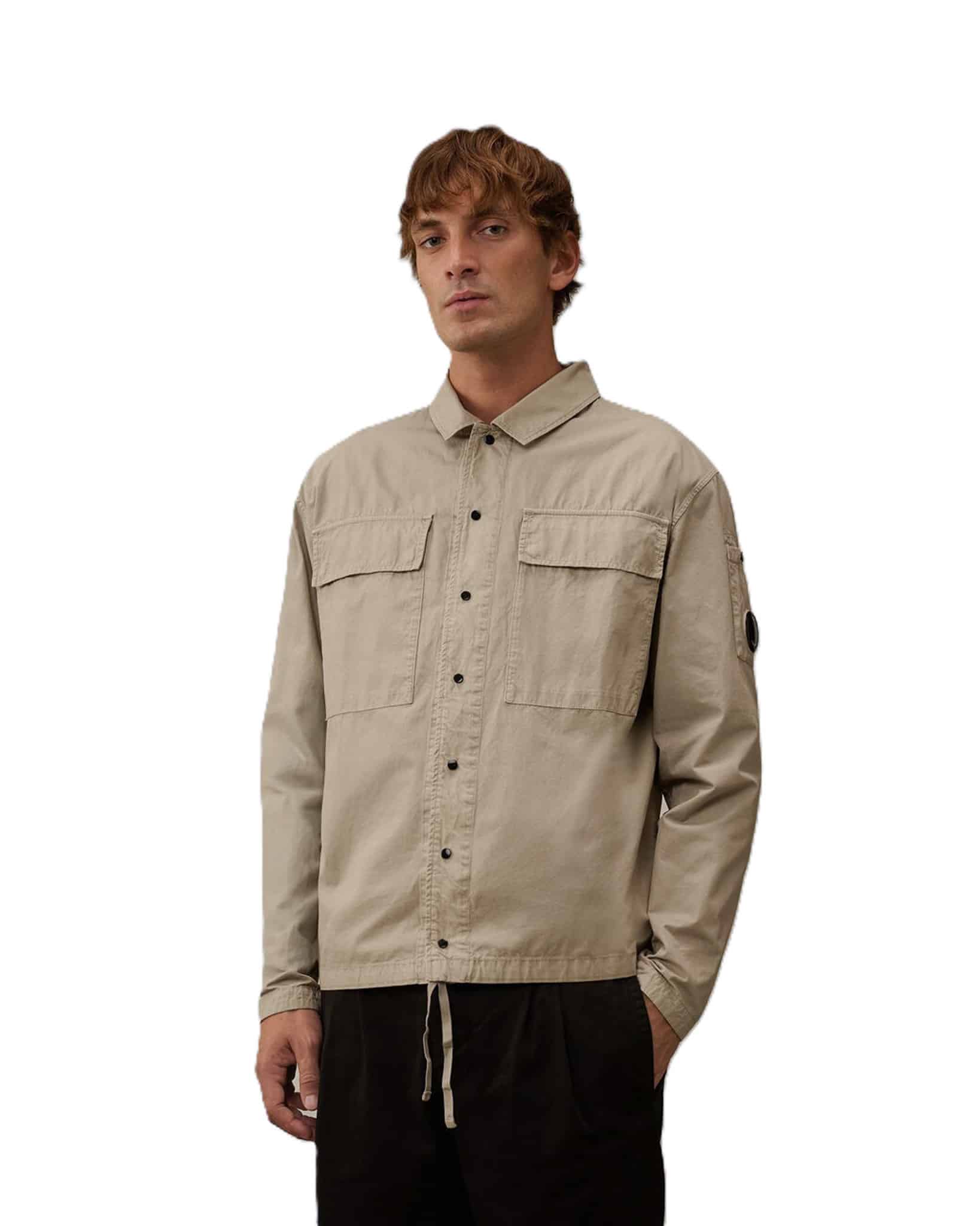 Overshirt aus perforierter Baumwolle, doppelt poliert mit Diamant- oder Carbon-Zylindern, für ein weiches, strukturiertes Finish. Das Overshirt besticht durch das ikonische C.P. Company-Glas, einen klassischen Kragen und einen Druckknopfverschluss. Abgerundet wird das Design durch Brusttaschen mit Patte und Druckknopfverschluss, verstellbare Manschetten mit Druckknopfverschluss und einen verstellbaren Kordelzug am Saum.