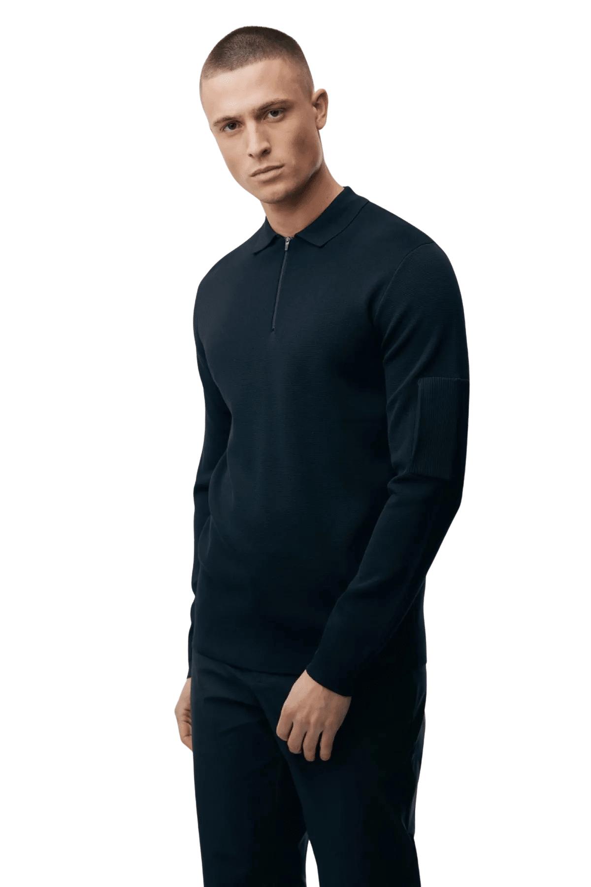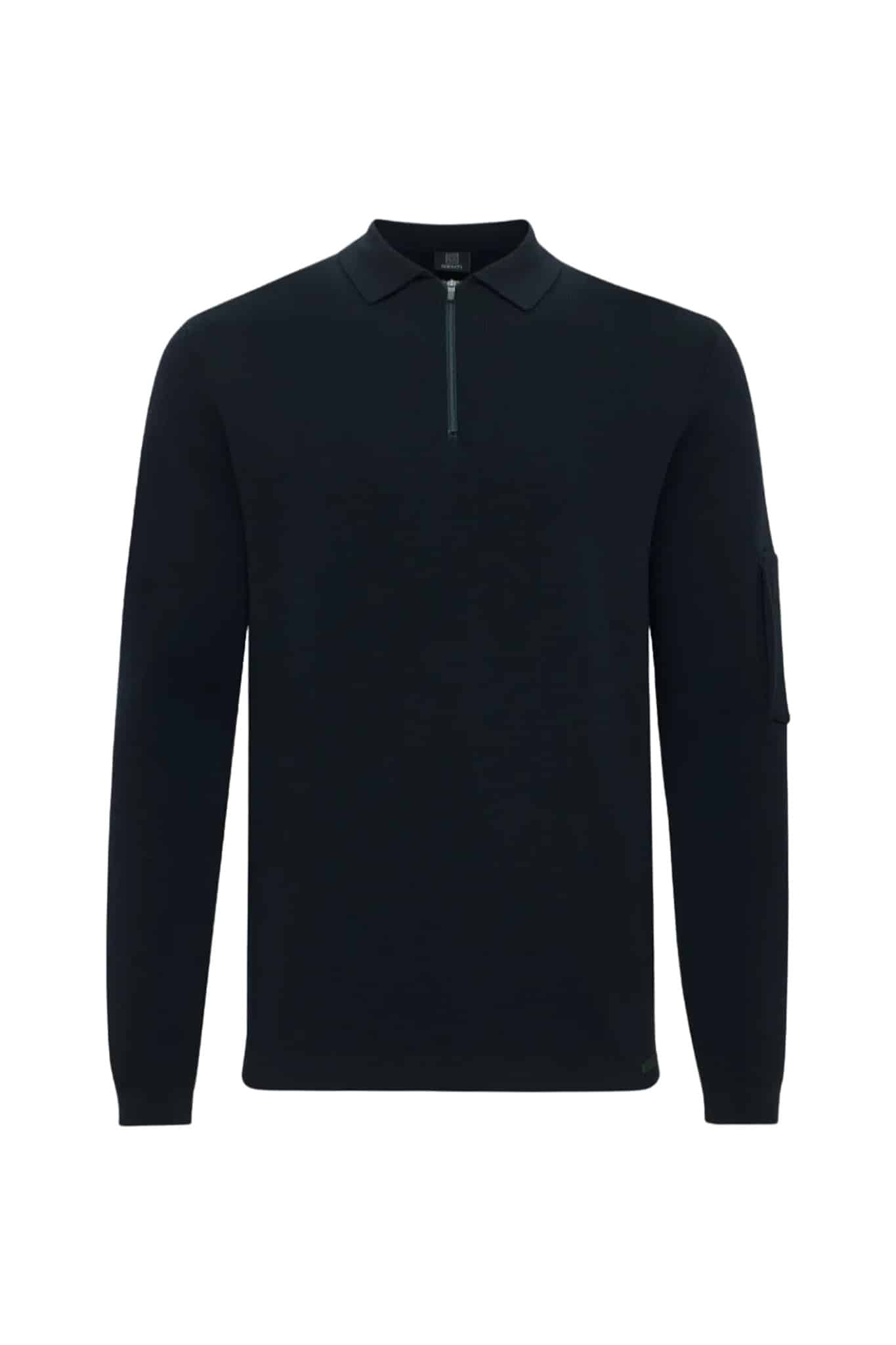 - Details: Polokragen, lange Ärmel, kurzer Reißverschluss