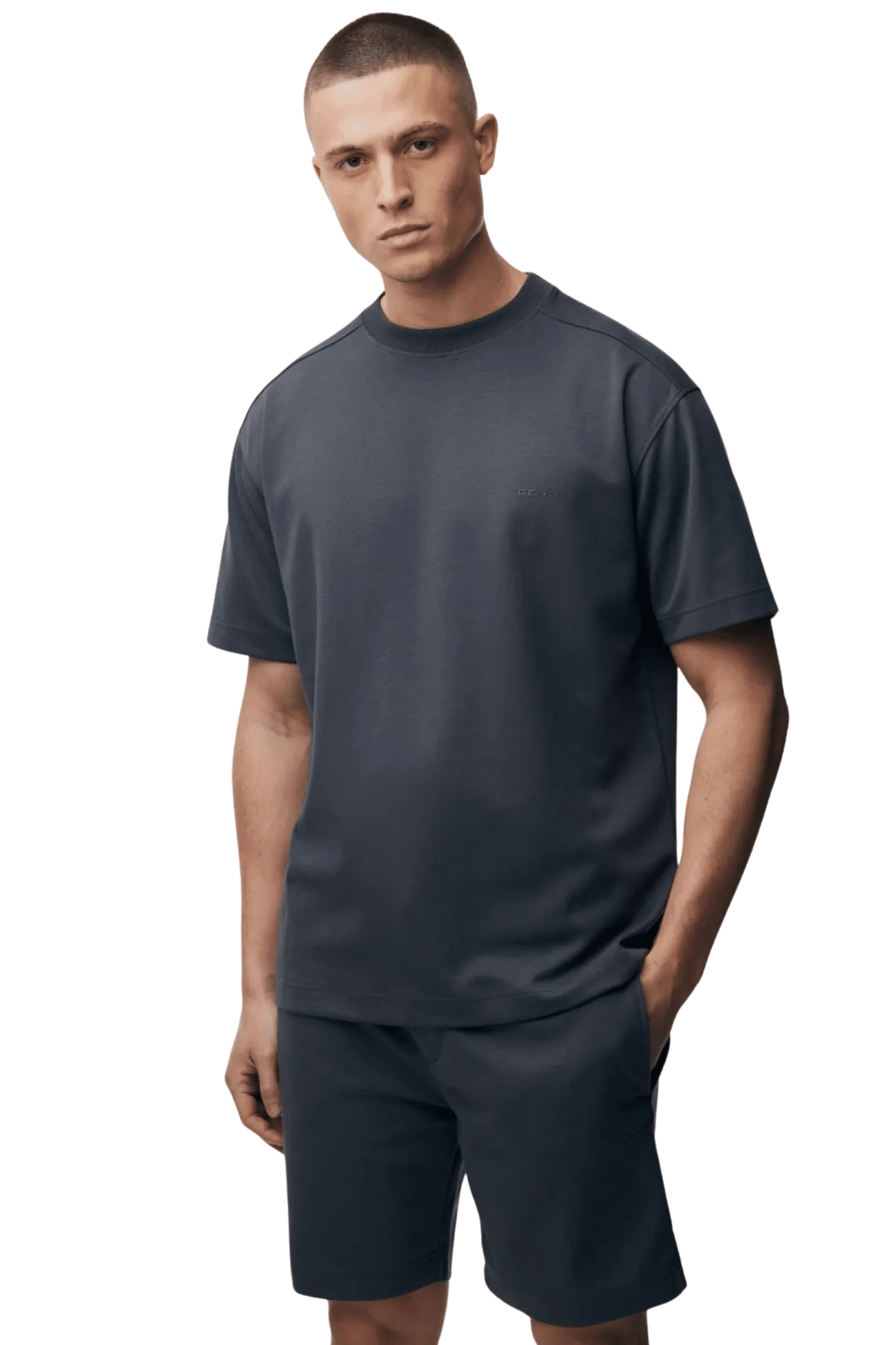 Die Polyester-Baumwoll-Mischung ist formbeständig, atmungsaktiv und pflegeleicht. Die glatte Textur und die minimalistischen Details unterstreichen den modernen Look und die Premium-Qualität von Genti.