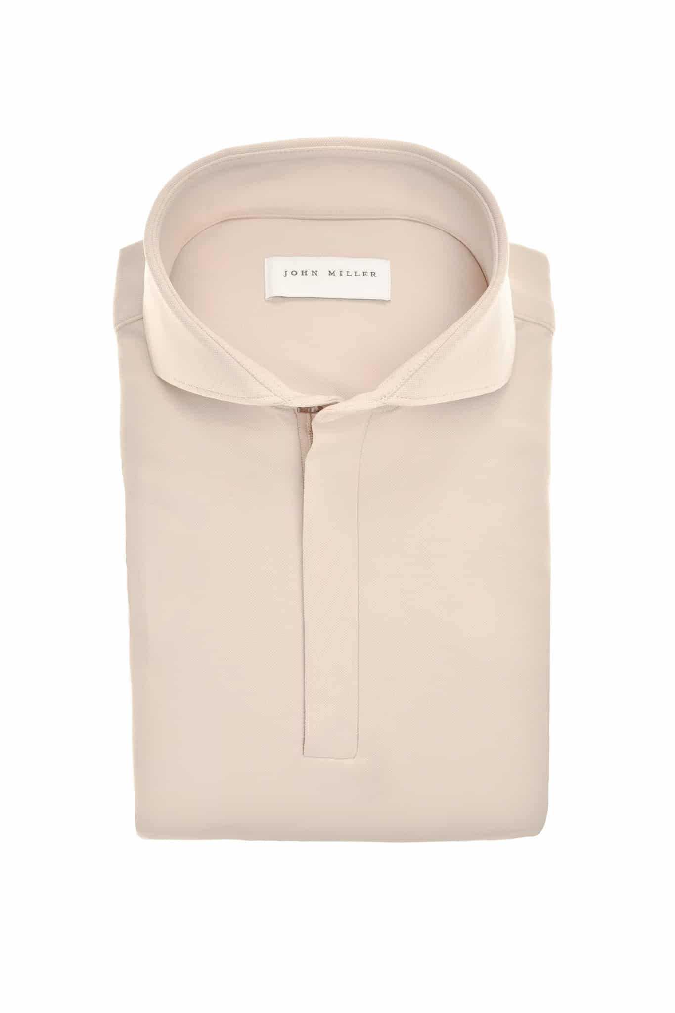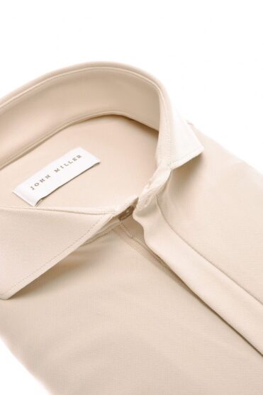Dieses beige Slim-Fit-Poloshirt ist aus Hyperstretch-Material gefertigt. Die Slim-Fit-Hemden von John Miller sind schmal geschnitten und betonen die Figur. Dieser Frühlings-Bestseller ist jetzt auch mit langen Ärmeln erhältlich! Das Hyperstretch-Material bietet stilvollen Tragekomfort. Dieser italienische Strick hat sich seit Saisons als Bestseller in den John Miller Kollektionen bewährt. Das Poloshirt hat einen stilvollen Haifischkragen mit einem Ton-in-Ton-Reißverschluss für einen eleganten Look. Die linke Manschette ist mit einem dezenten, gestickten Logo versehen.