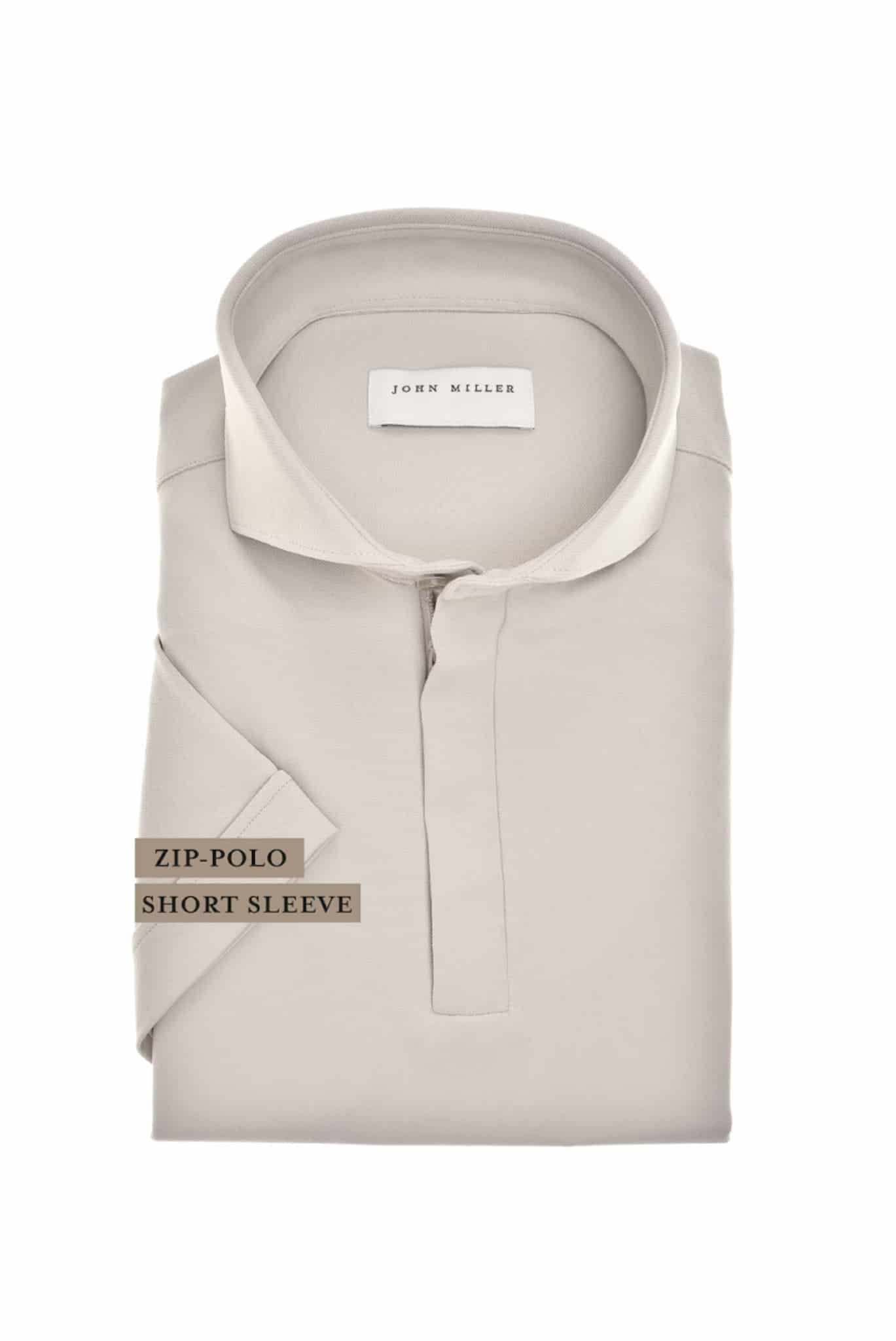 Dieses hautenge, graue Slim-Fit-Poloshirt aus Hyperstretch-Material hat kurze Ärmel. Die Slim-Fit-Poloshirts von John Miller sind figurbetont geschnitten und schmeicheln der Figur. Das Hyperstretch-Material bietet stilvollen Tragekomfort. Dieser italienische Strickstoff hat sich über mehrere Saisons als Bestseller in den John Miller Kollektionen bewährt. Das Poloshirt verfügt über einen eleganten Cutaway-Kragen mit Ton-in-Ton-Reißverschluss.