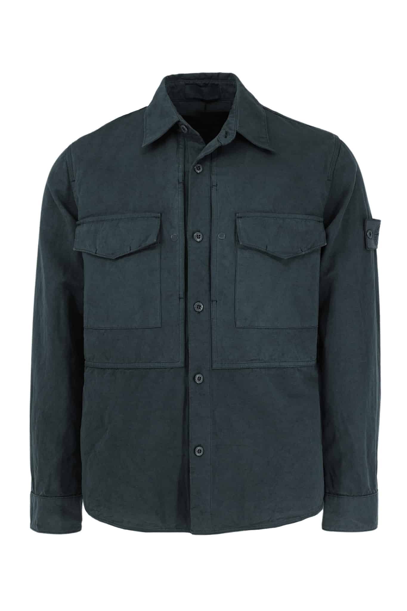 Die Ghost-Kollektion, inspiriert vom Camouflage-Konzept, ist komplett monochrom. Selbst das Stone Island-Logo ist in einer speziellen einfarbigen Version gefertigt, die perfekt mit dem Kleidungsstück verschmilzt. Overshirt aus Baumwoll-Leinen-Canvas. Stückgefärbt.