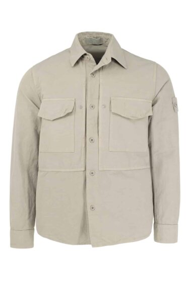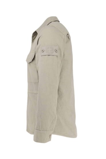 Die Ghost-Kollektion, inspiriert vom Camouflage-Konzept, ist komplett monochrom. Selbst das Stone Island-Logo ist in einer speziellen einfarbigen Version gefertigt, die perfekt mit dem Kleidungsstück verschmilzt. Overshirt aus Baumwoll-Leinen-Canvas. Stückgefärbt.