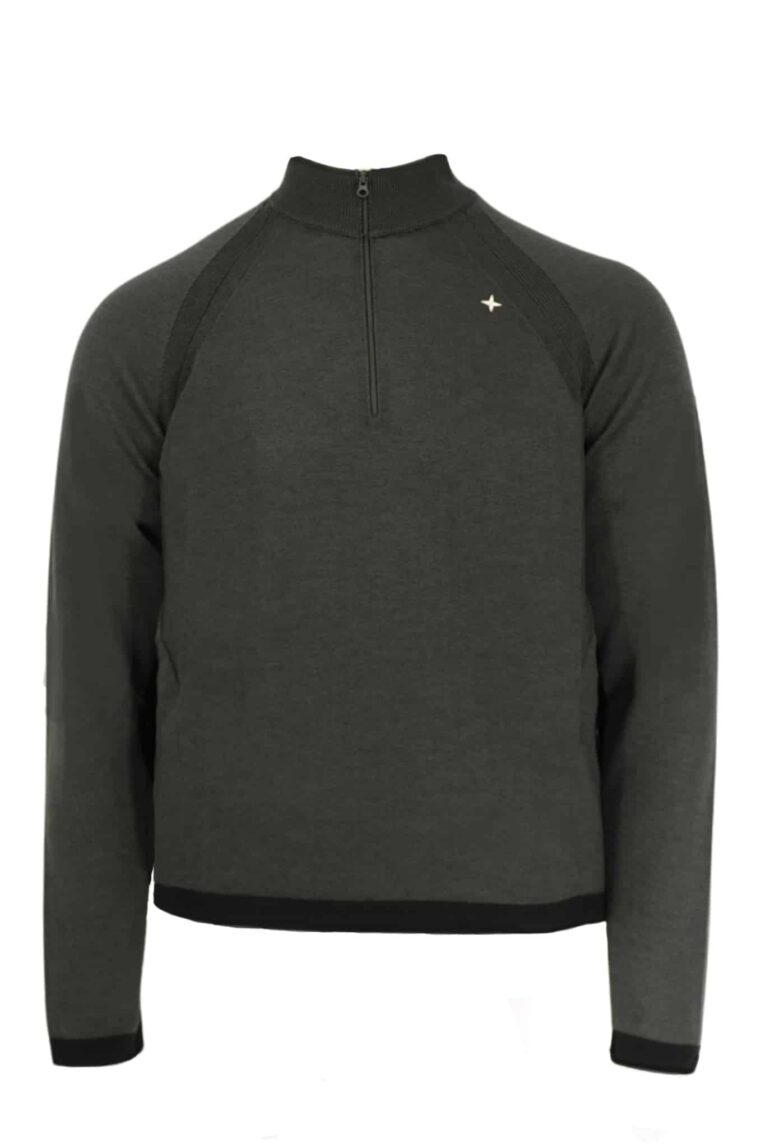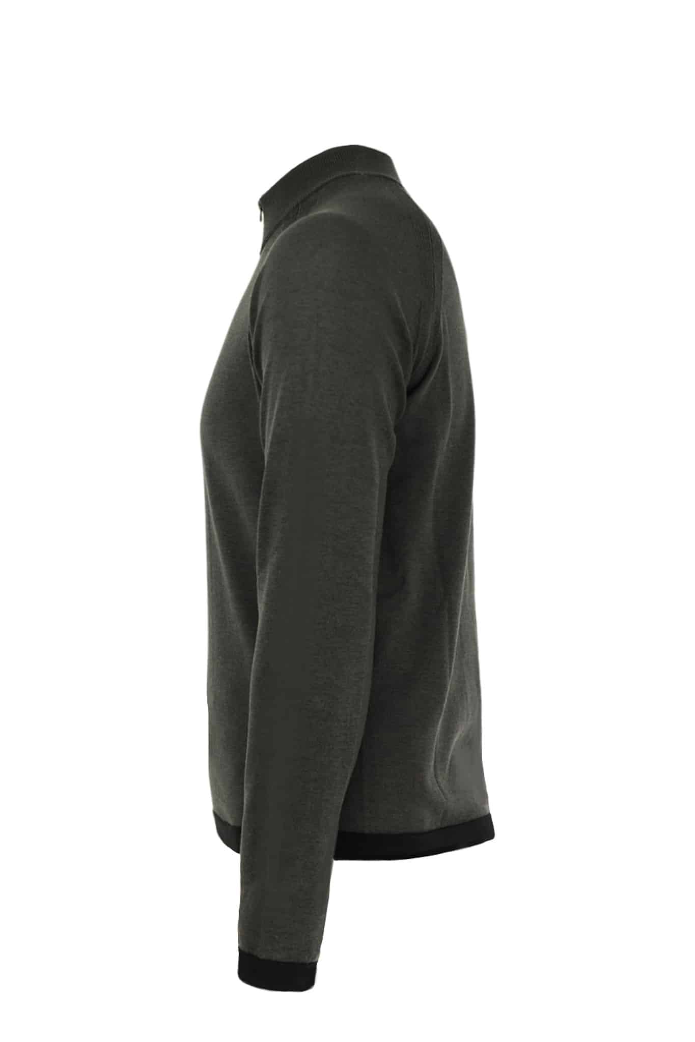 Strickpullover mit halbem Reißverschluss aus recyceltem PrimaLoft® Bio™ Polyester und Wolle. Glatt rechts gestrickt. Maschenprobe 14.