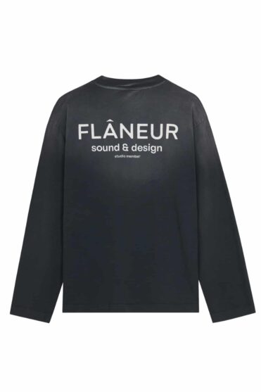 Long sleeve T-shirt with screened print in washed black color.
