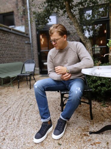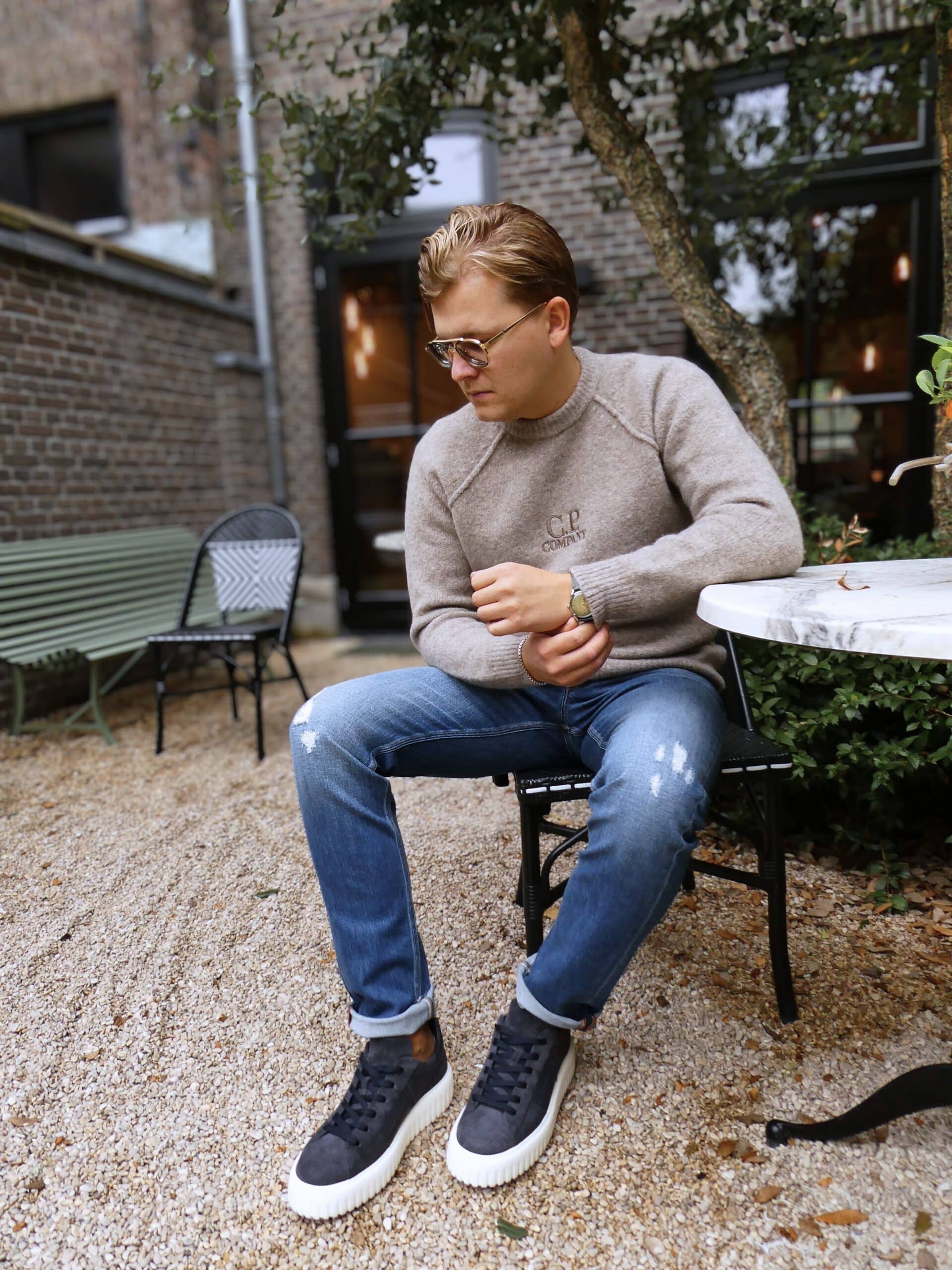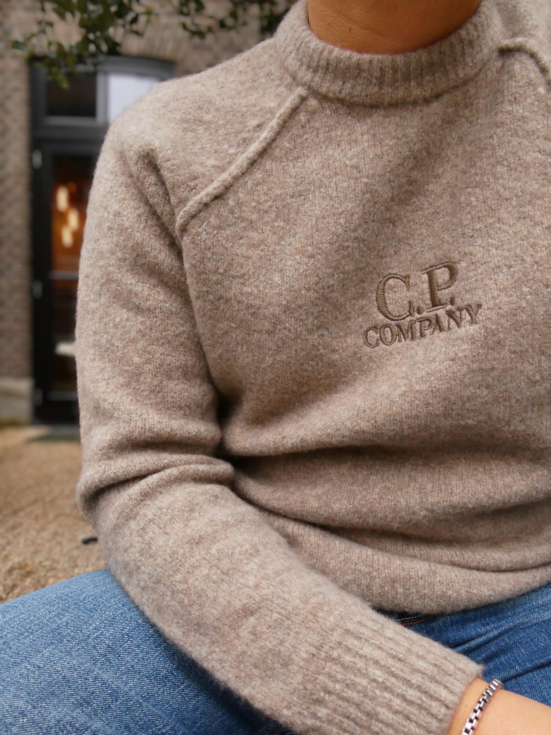 Crewneck sweater crafted in Extrafine Merino Wool. The knit features front embroidered logo detail, and raglan sleeves with raised contrast seams. Finished with ribbed cuffs and hem. Gauge 3. Regular fit.