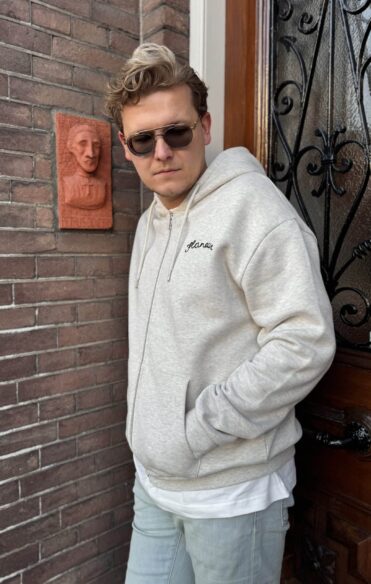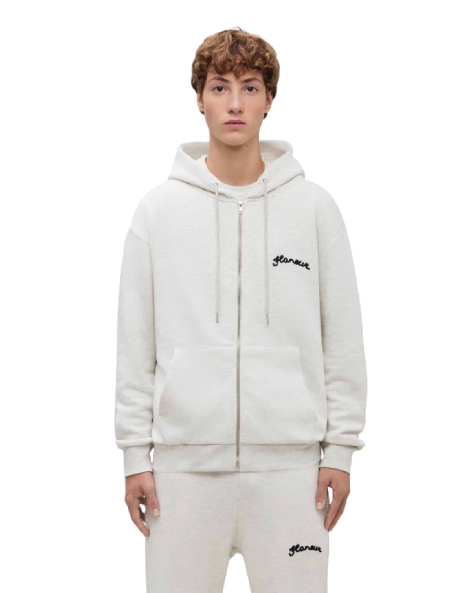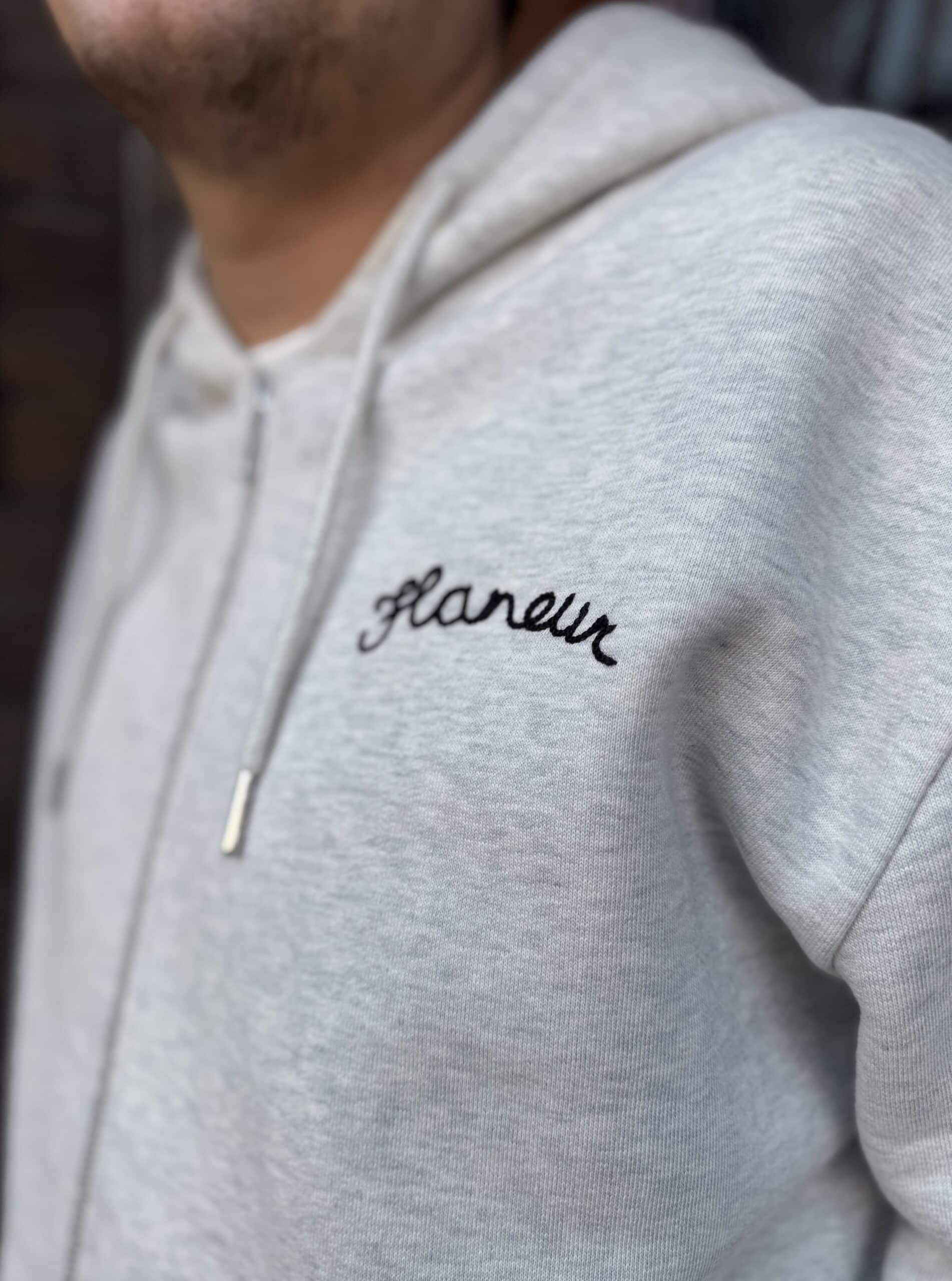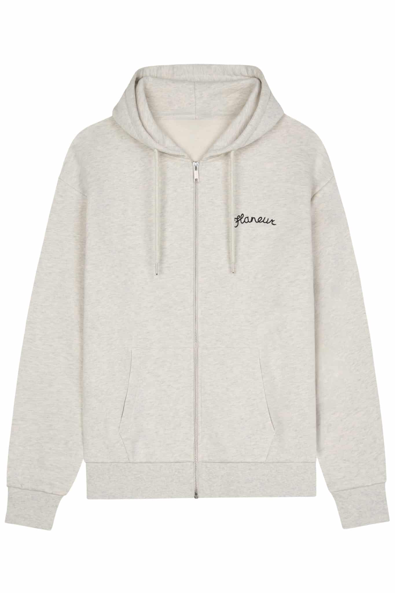 Zip-Up Hoodie with embroidered signature detail in light gray/beige
