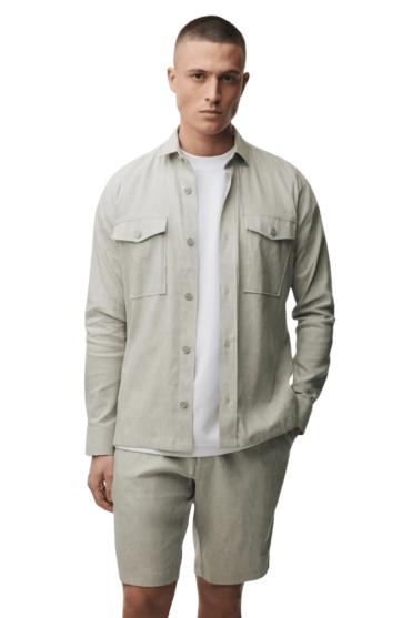 The linen blend provides a fresh, breathable feel, while viscose adds softness. Thanks to the stretch, the overshirt moves with you and retains its shape, even with everyday wear.