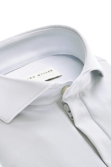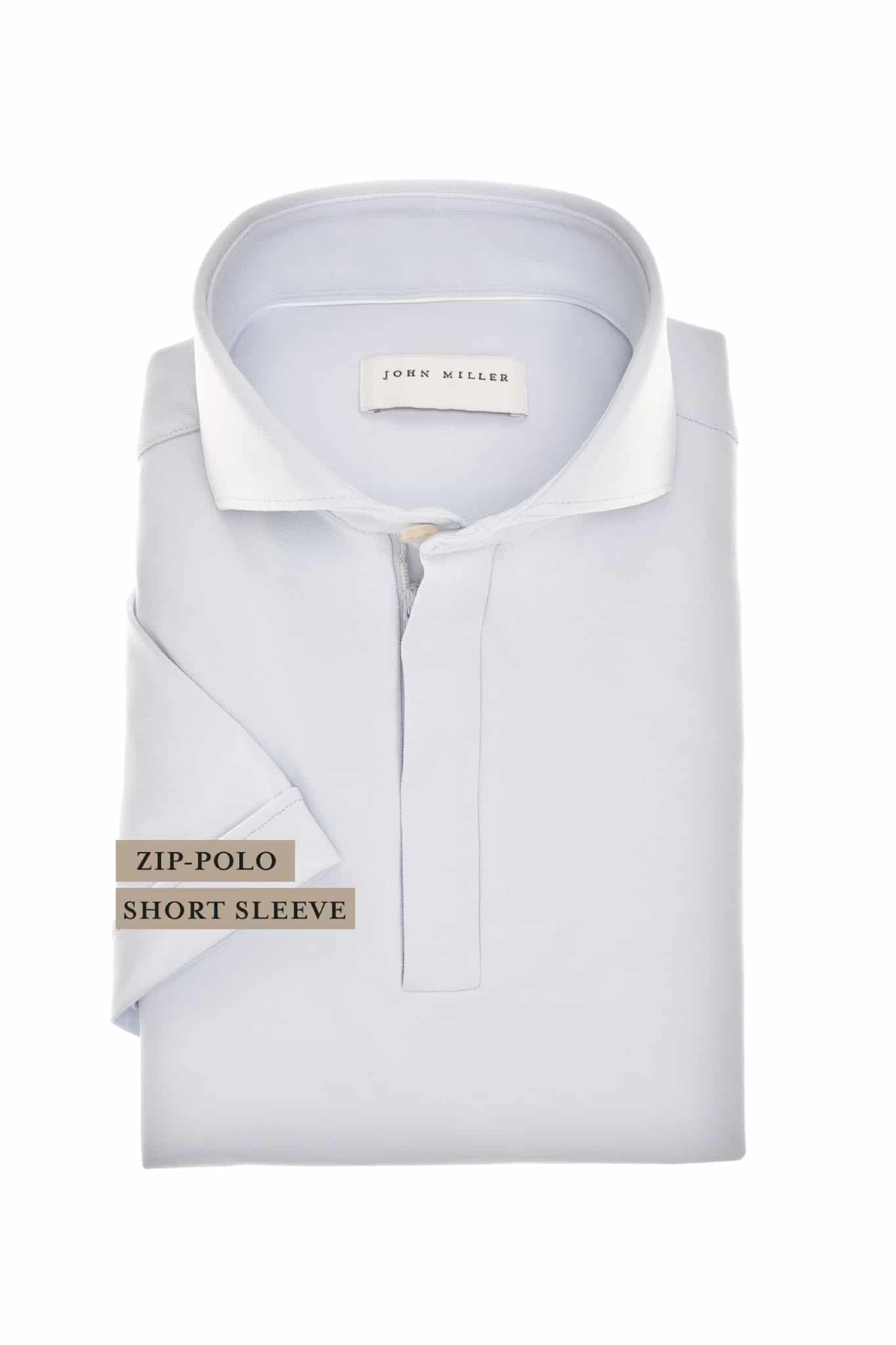 This ice blue slim-fit polo shirt is designed in a hyperstretch fabric and has short sleeves. John Miller slim-fit polo shirts are cut slim, accentuating the figure. The hyperstretch fabric offers stylish comfort. This Italian knit has proven itself for seasons as a bestselling quality in the John Miller collections. The polo shirt has a stylish cutaway collar that closes with a tone-on-tone zipper for an elegant look.