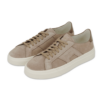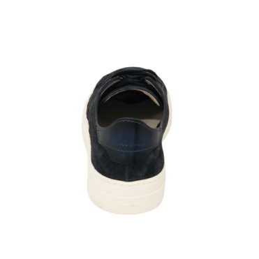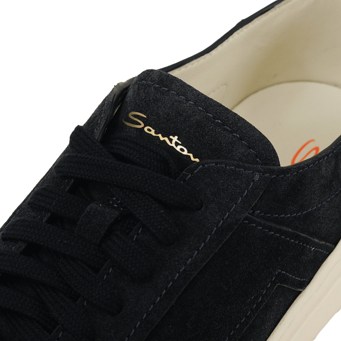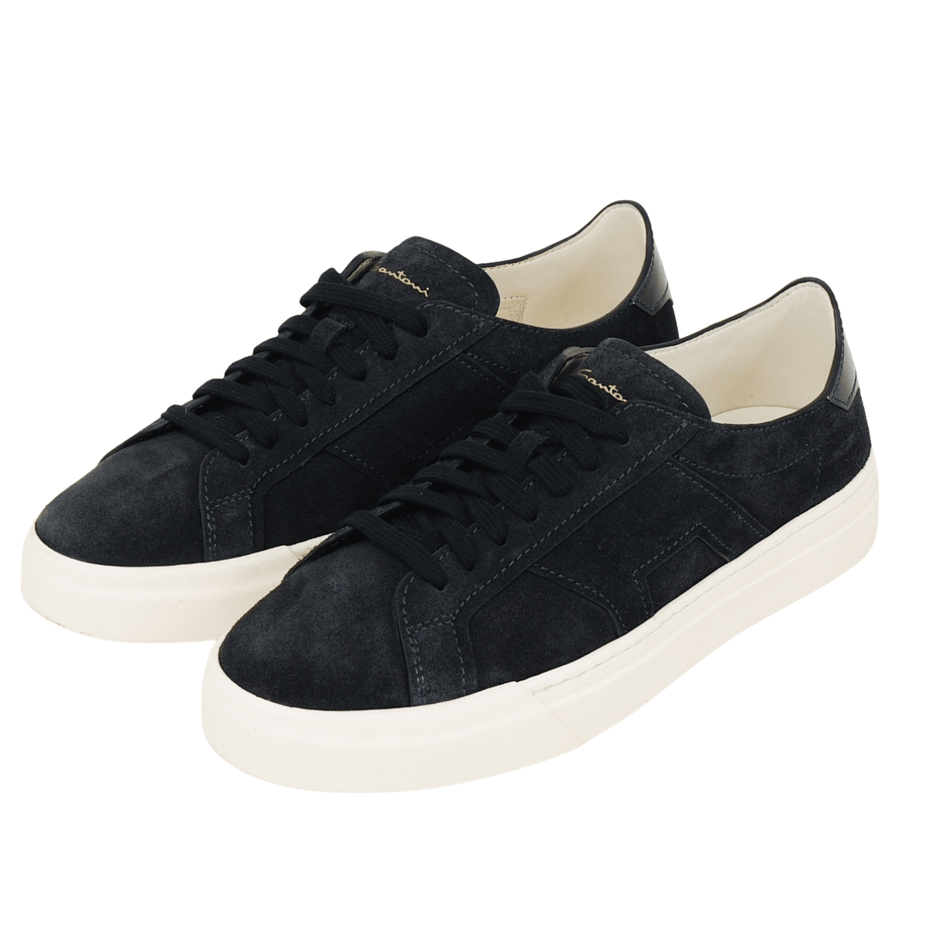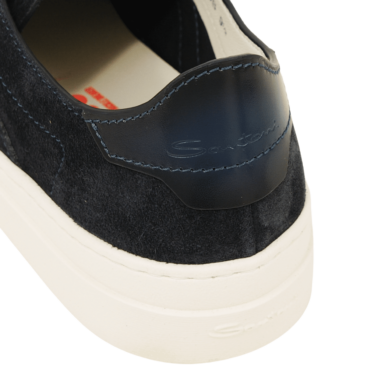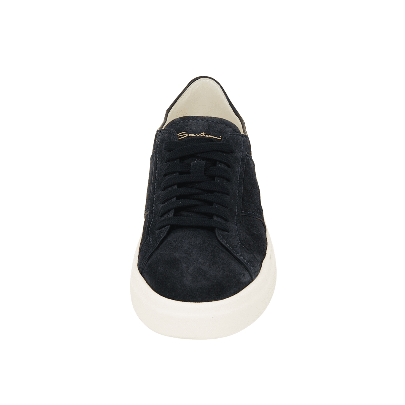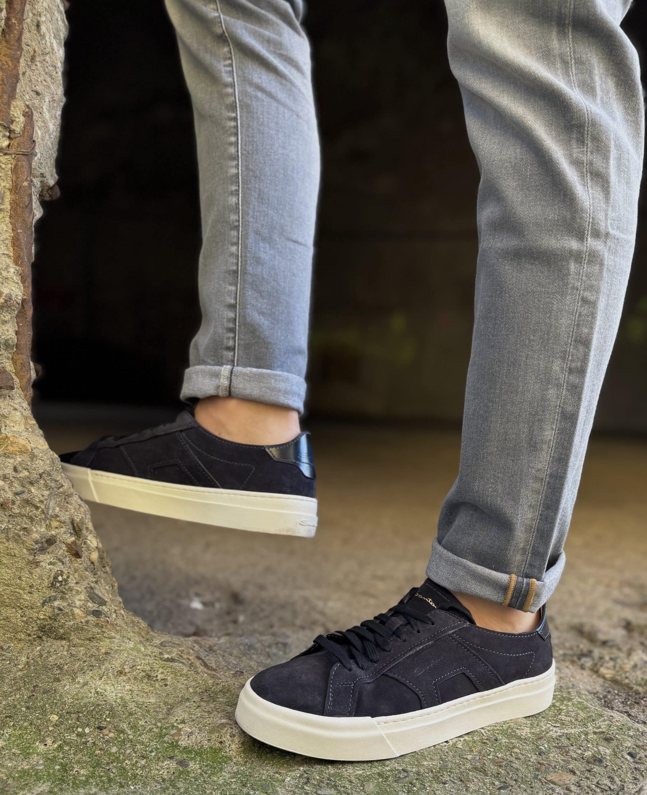 Is a low sneaker made of suede leather and has a casual look. Subtle gold lettering Santoni on the tongue.
