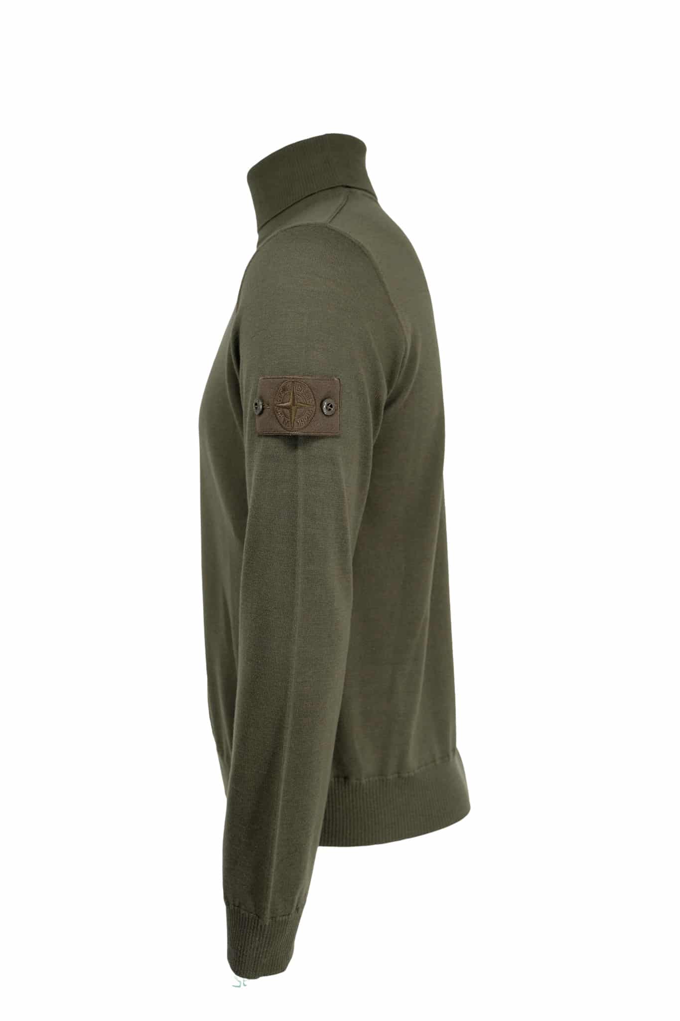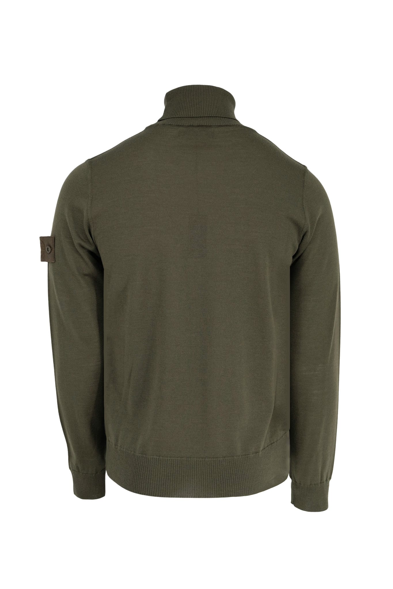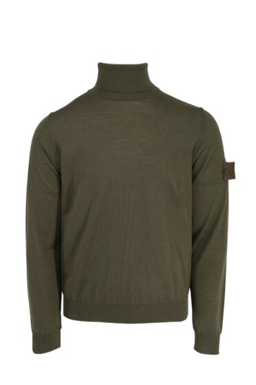 Ribbed collar. Stone Island Ghost badge on left sleeve. Ribbed cuffs and bottom band.