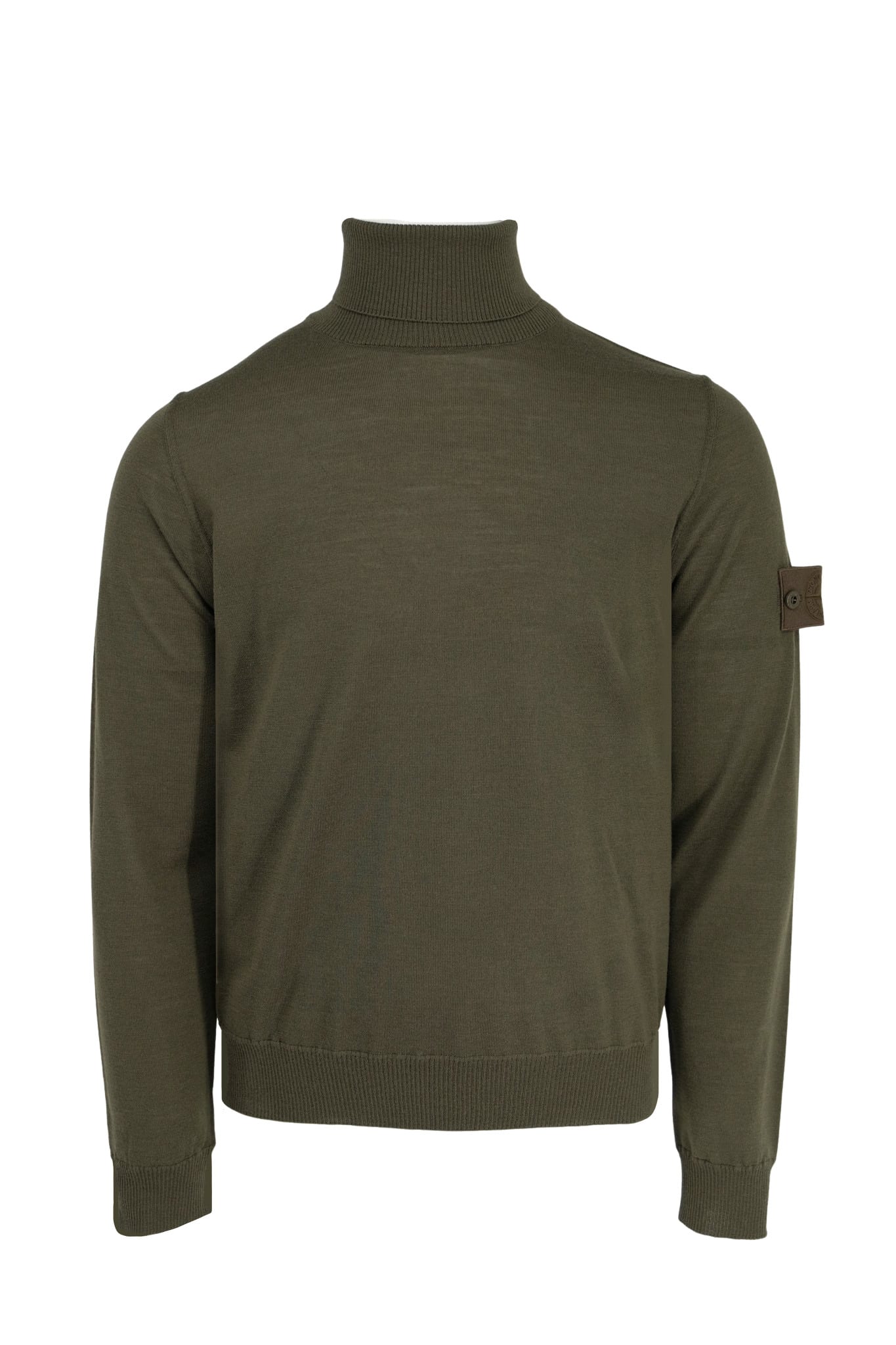 Turtleneck sweater in light RWS-certified pure wool with stockinette stitch, with ribbed details. Gauge 14.