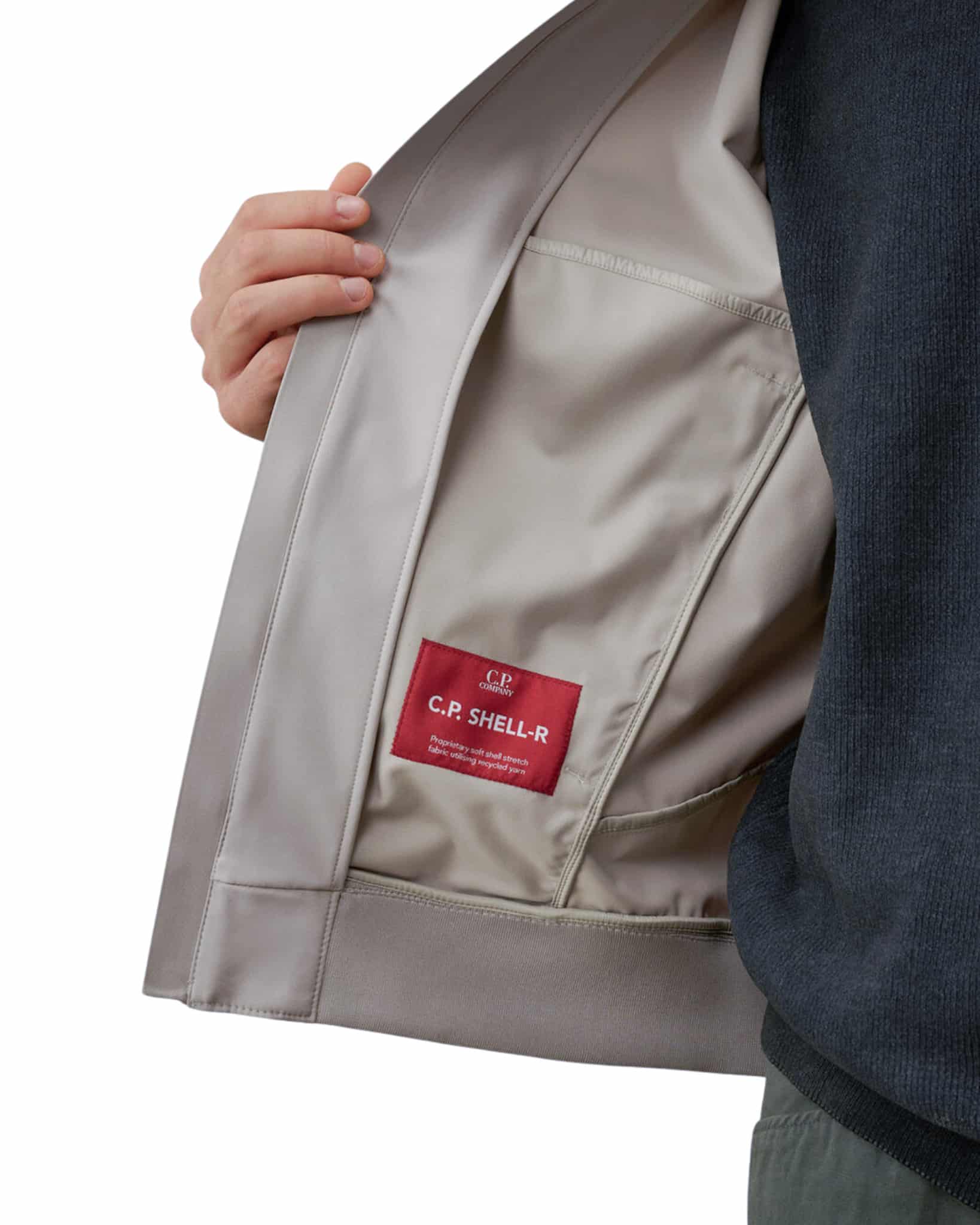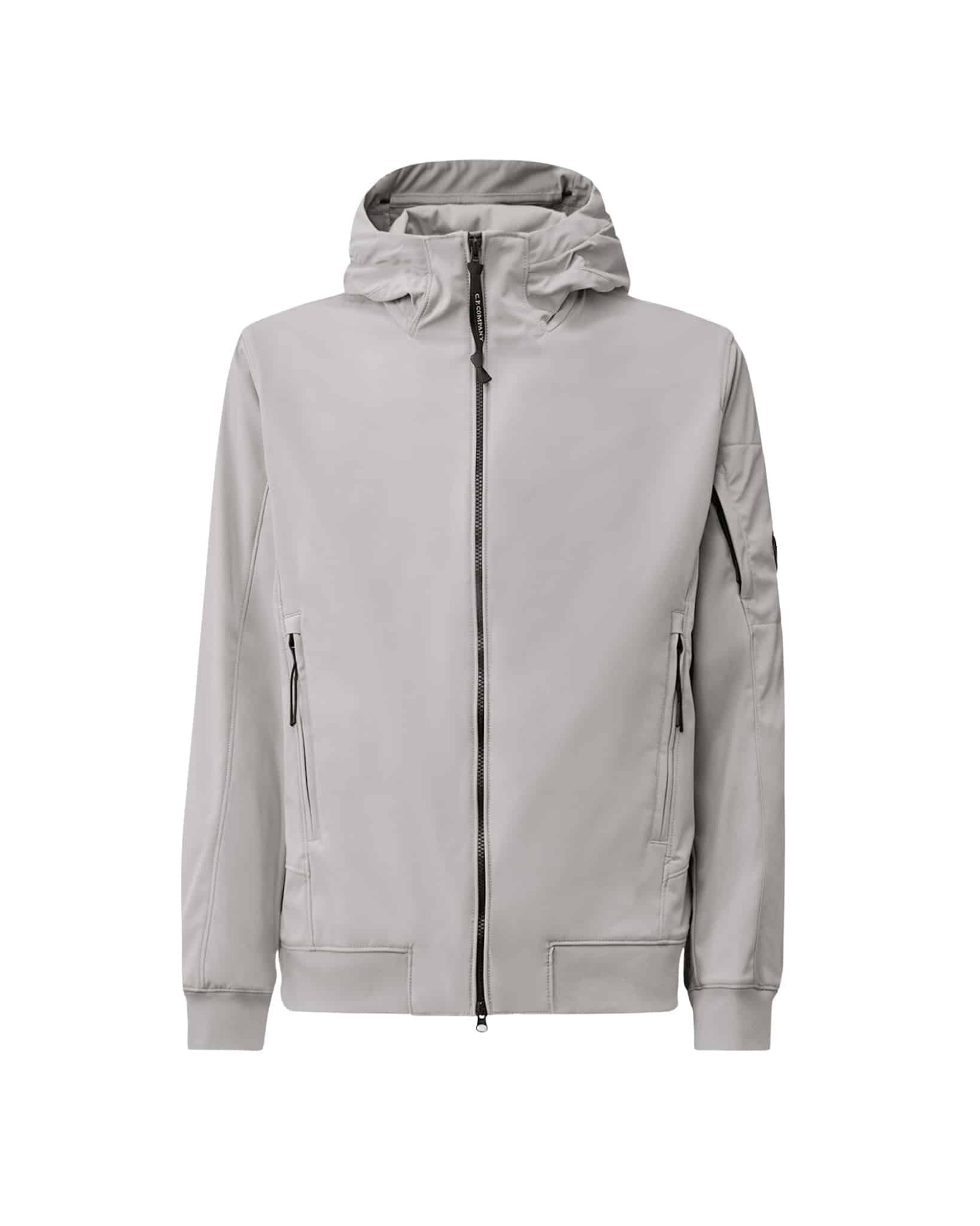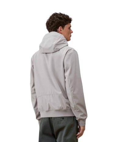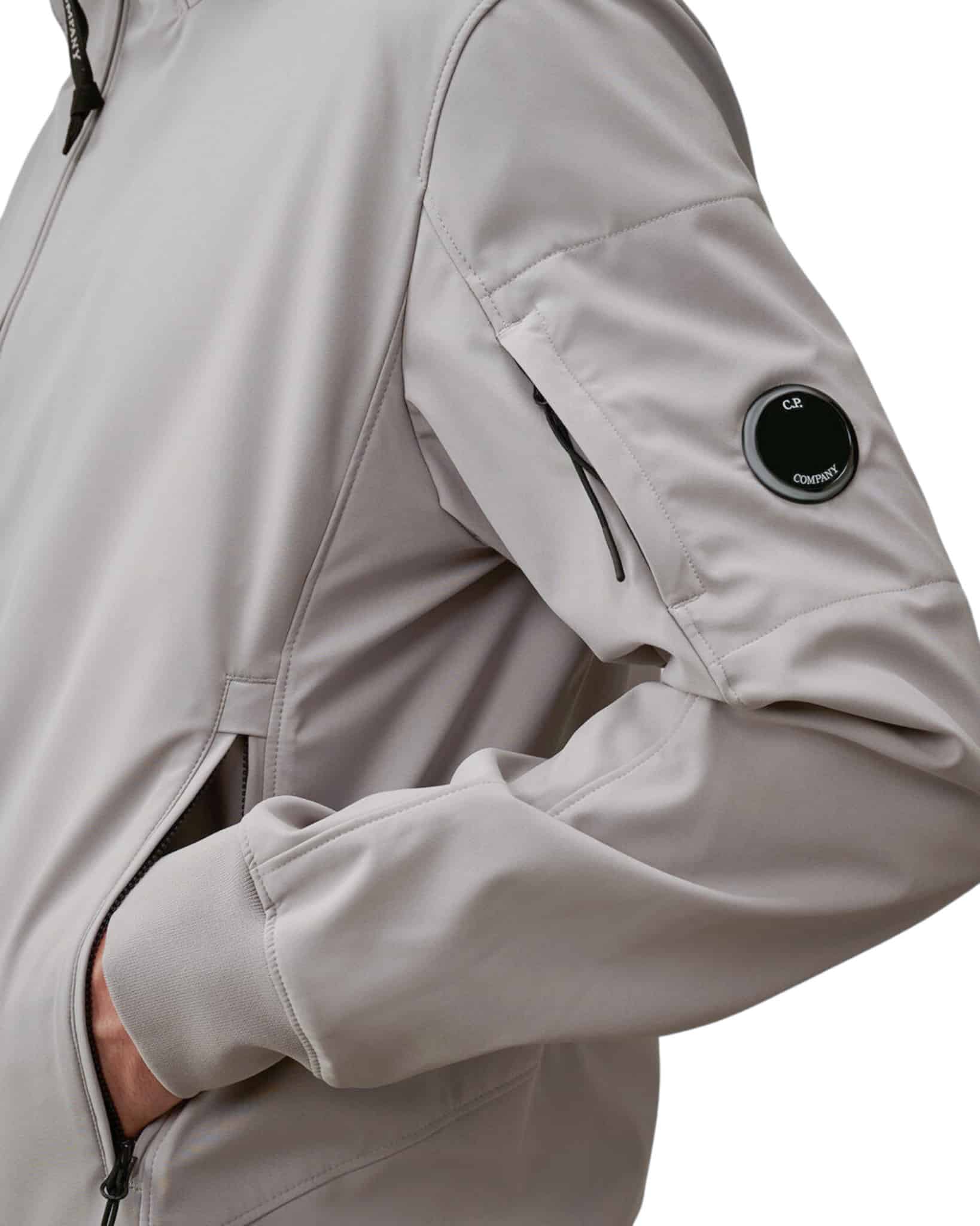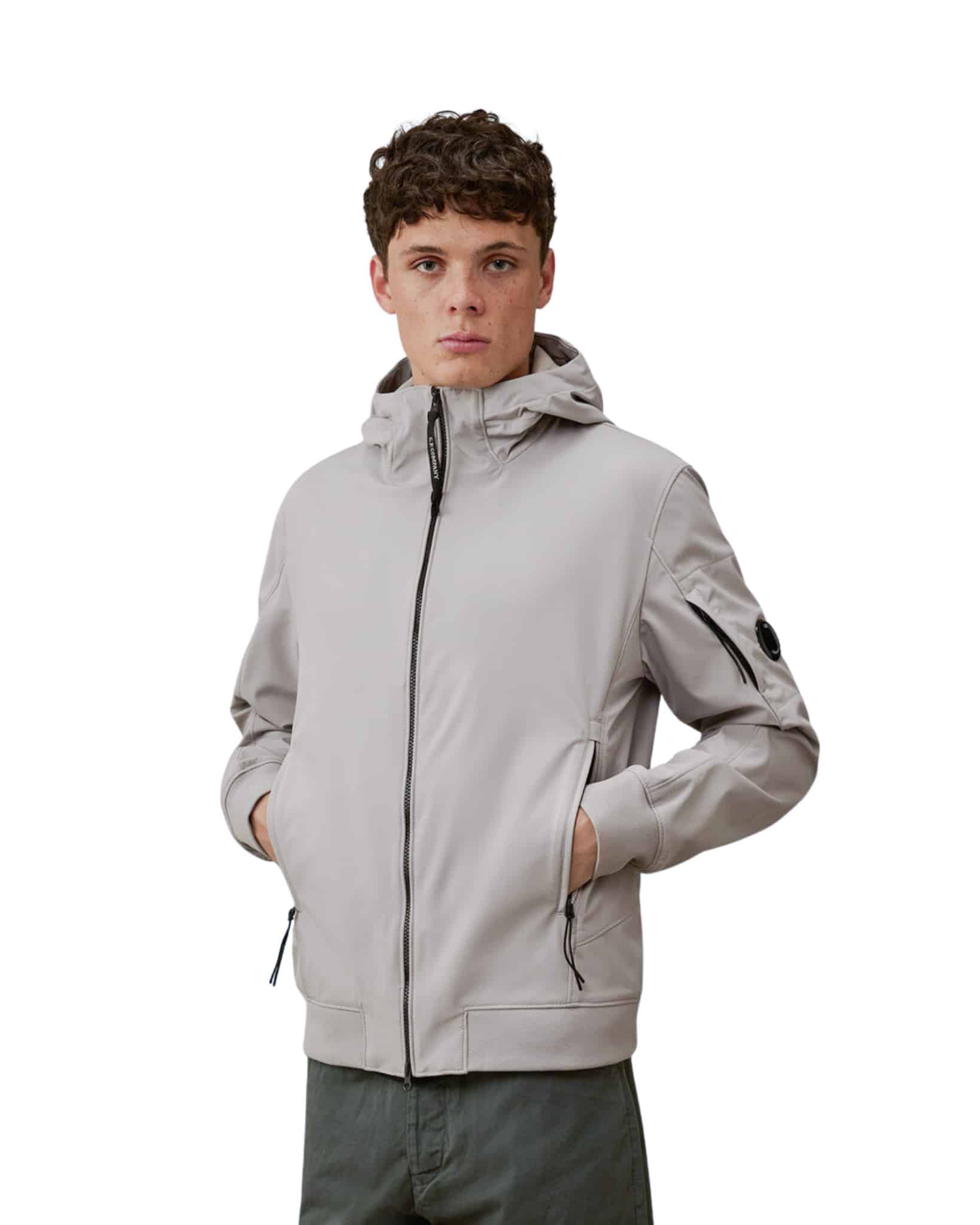 Veste à capuche confectionnée en C.P. Shell-R, une softshell trois couches en polyester recyclé extensible, certifiée GRS (Global Recycled Standard). Ce tissu multifilament allie confort et protection, offrant une imperméabilité jusqu’à 5 000 mm et une excellente protection contre le vent. Ce modèle est doté d’une capuche ajustable, d’une fermeture éclair intégrale à double sens et de poches latérales zippées. Le logo Lens emblématique de C.P. Company est apposé sur la poche de la manche, et les poignets et l’ourlet sont élastiqués.