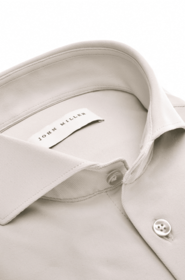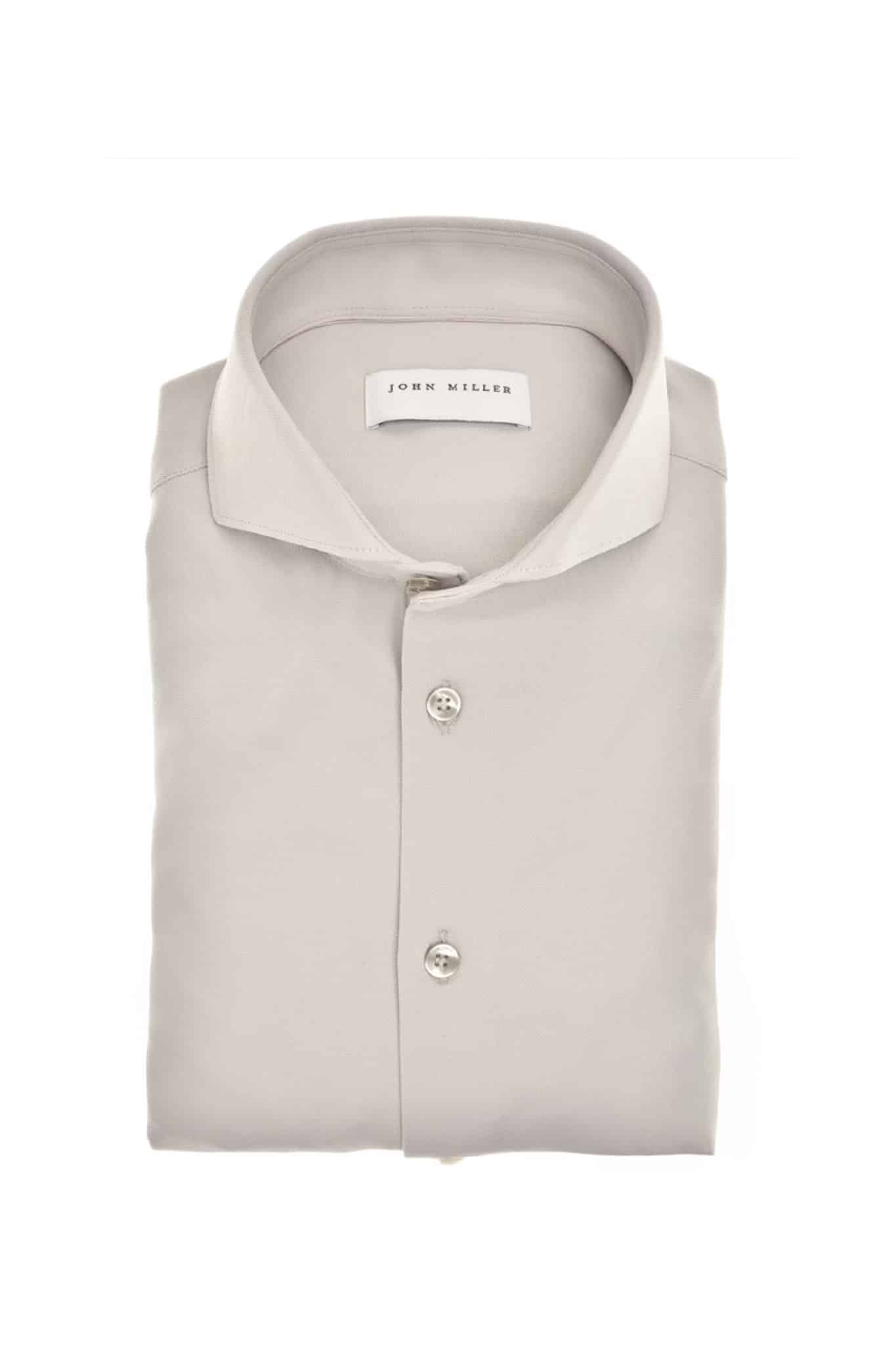 Dit kiezelgrijs slim fit overhemd is ontworpen in een hyperstretch kwaliteit. John Miller slim fit overhemden zijn slank gesneden en accentueren daardoor het lichaam. De hyperstretch kwaliteit van de stof geeft je stijlvol draagcomfort. Dit Italiaanse breisel heeft zich al seizoenen lang bewezen als bestselling kwaliteit binnen de John Miller collecties. Het overhemd heeft een modische cutaway boord waarbij de punten van de boord naar achteren zijn weggesneden. De linker manchet heeft een subtiel geborduurd logo.
