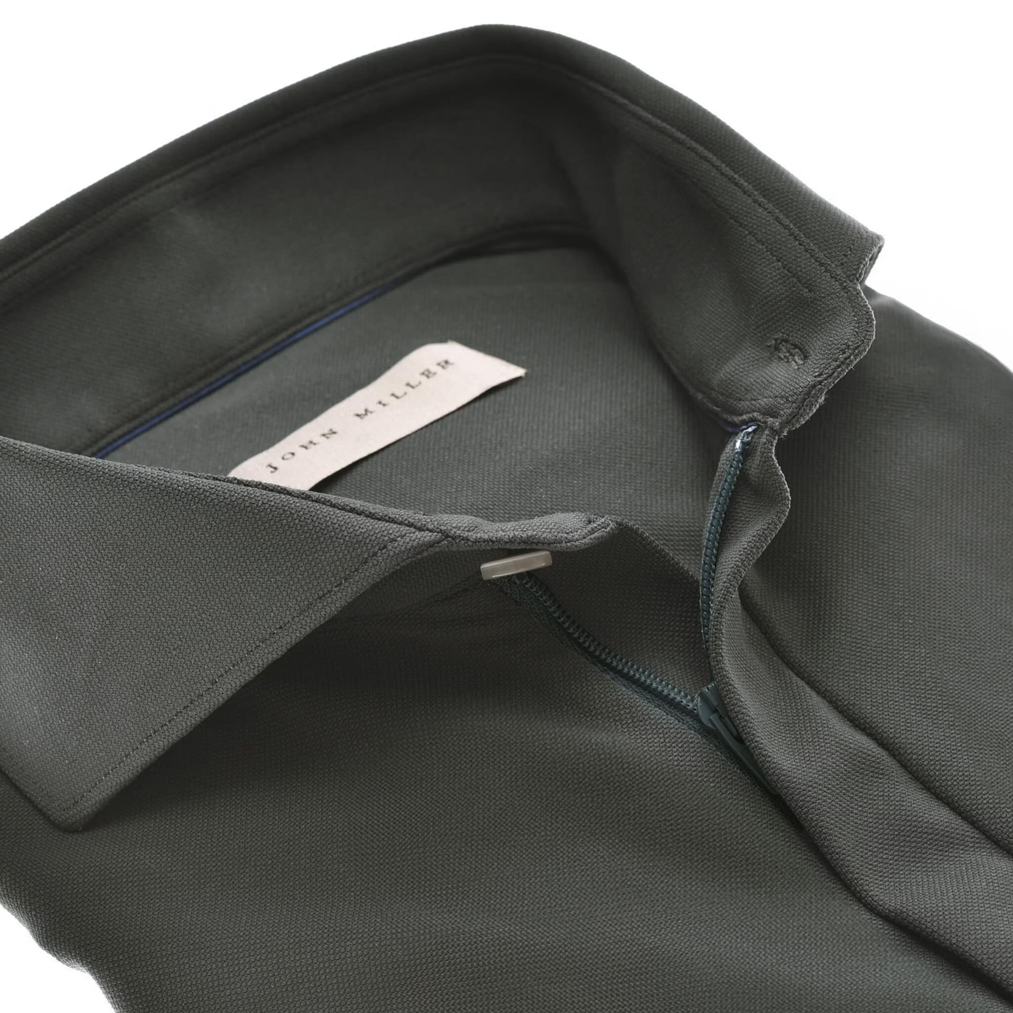 Dit donkergroen slim fit polo shirt met ritssluiting is ontworpen in een hyperstretch kwaliteit en heeft korte mouwen. De nieuwkomer binnen de hyperstretch collectie! John Miller slim fit overhemden zijn slank gesneden en accentueren daardoor het lichaam. De hyperstretch kwaliteit van de stof geeft je stijlvol draagcomfort. Dit Italiaanse breisel heeft zich al seizoenen lang bewezen als bestselling kwaliteit binnen de John Miller collecties. Het polo shirt heeft een modische cutaway boord waarbij de punten van de boord naar achteren zijn weggesneden.