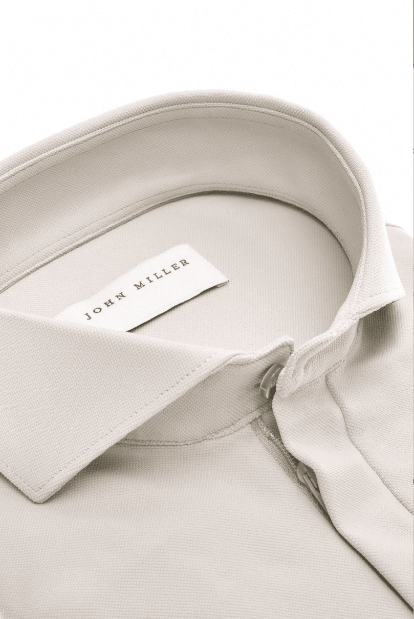 Dit kiezelgrijs slim fit poloshirt is ontworpen in een hyperstretch kwaliteit. John Miller slim fit poloshirts zijn slank gesneden en accentueren het lichaam. De hyperstretch kwaliteit van de stof geeft je stijlvol draagcomfort. Dit Italiaanse breisel heeft zich al seizoenen lang bewezen als bestverkochte kwaliteit binnen de John Miller collecties. Het poloshirt heeft een modieuze cutaway boord die gesloten wordt met een ton-sur-ton uitgevoerde rits voor een elegante uitstraling. Het linkermanchet heeft een subtiel ondertitellogo.