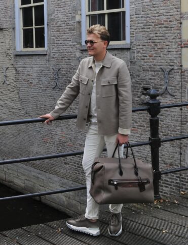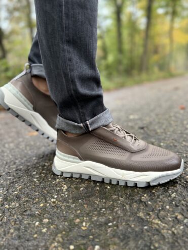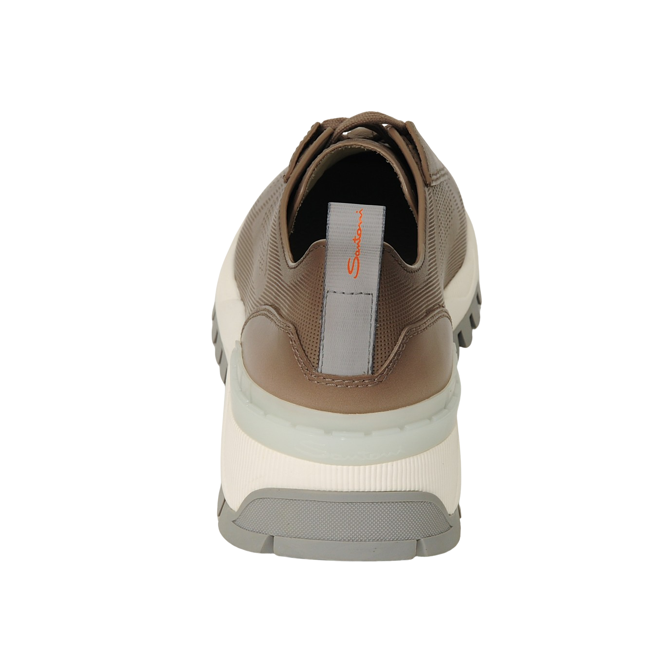 Is een lage sneaker en heeft een sportieve uitstraling. Gemaakt met de nieuwste technieken en materialen. Deze schoen wordt gekenmerkt door een bovenwerk van leder en een stevige loopzool voor een ondersteunende stap. Afgewerkt met een leren logodetail op de hiel als symbool van de de onmiskenbare Santoni-stijl.