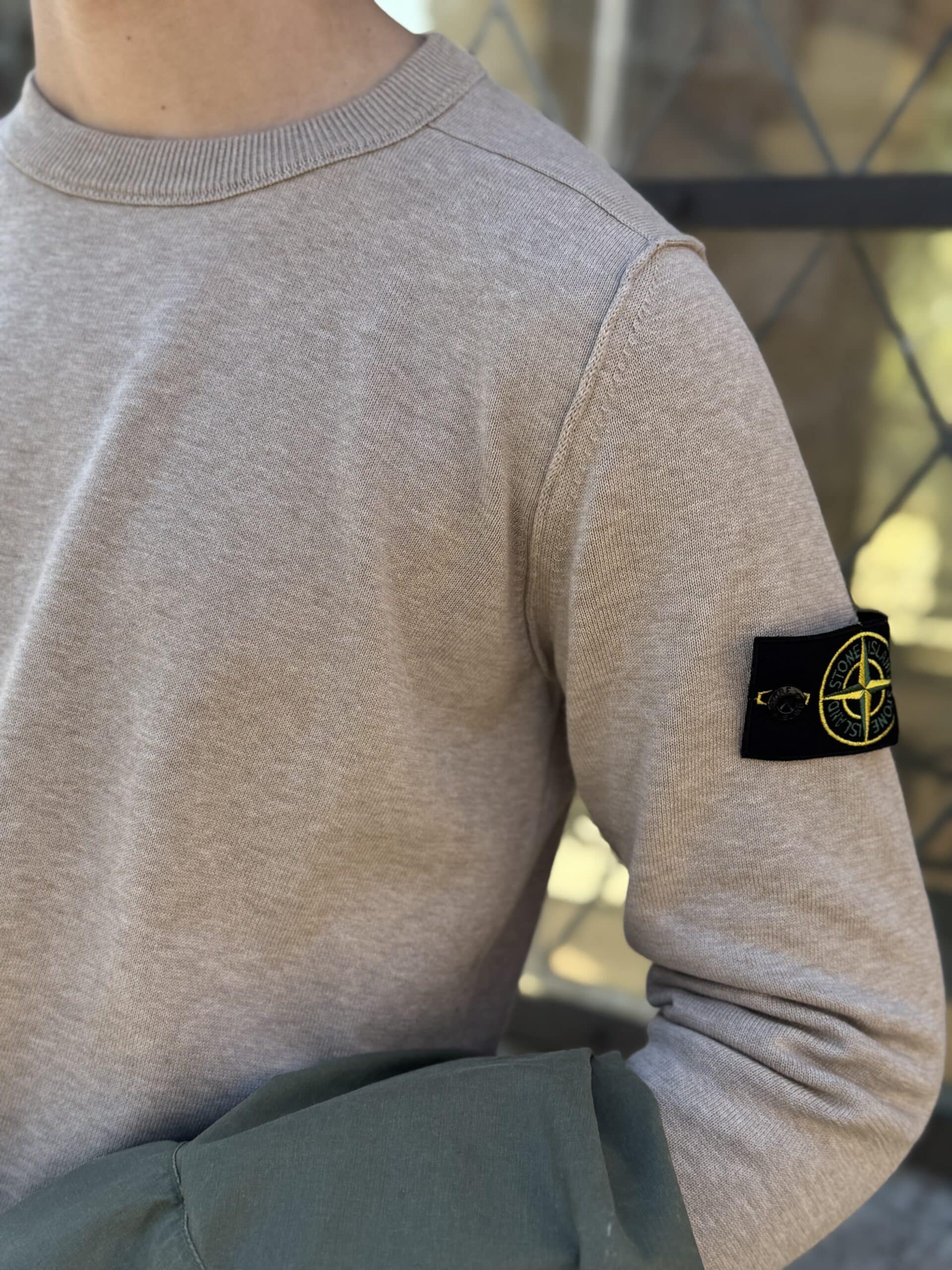 Gebreide trui met ronde hals van zacht biologisch katoen. Steekverhouding 14.