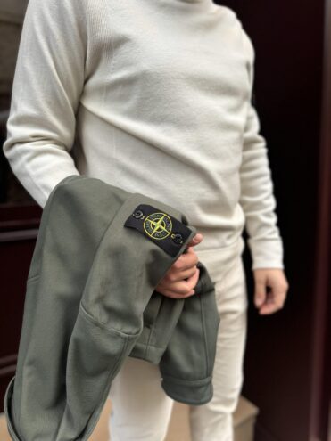 Eén opgestikte borstzak met staande ritssluiting. Welt handzakken. Stone Island-badge op de linkermouw. Drukknopen op de manchetten. Tweewegritssluiting. Normale pasvorm.