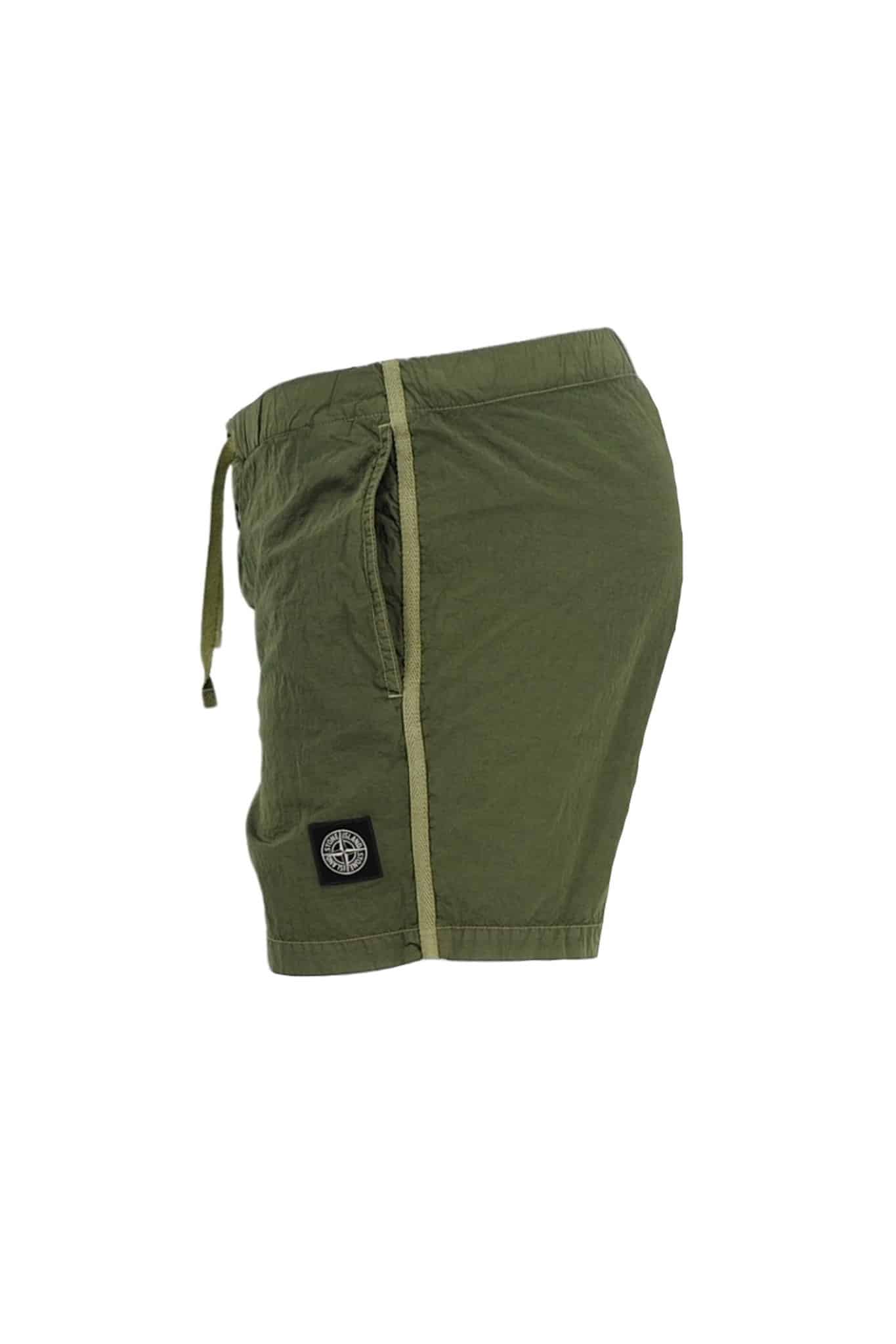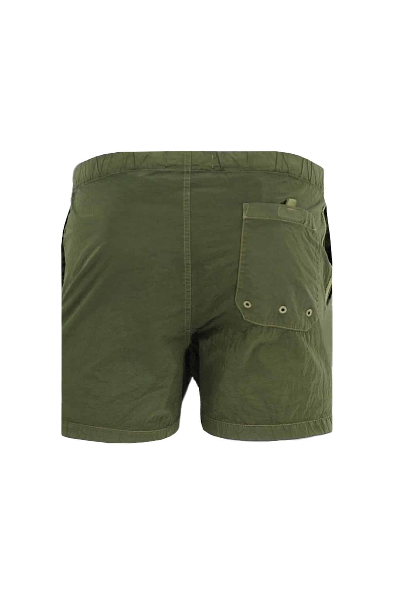 Korte zwembroek van Nylon Metal, gemaakt met ECONYL® gerecyclede garens, met contrasterende stiksels, zijband, zakken en mesh voering. Geverfd.