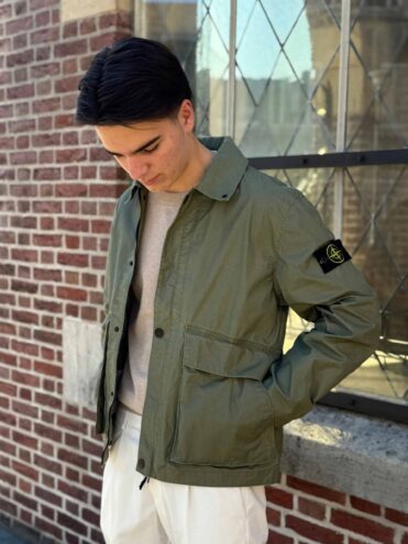 STONE ISLAND – WAXED PIGMENT COTTON COACH JACKET MILITARY GREEN (42612)